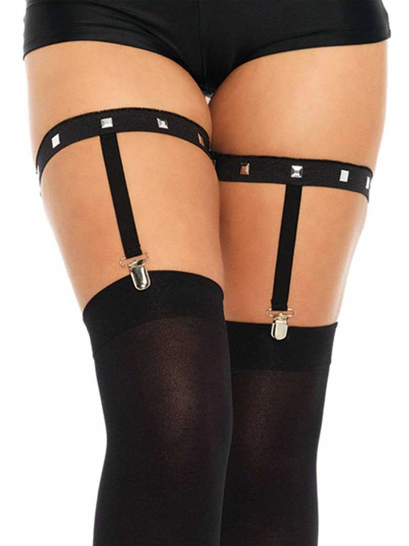 - Package includes: Pair of Studded Thigh High Garter Suspender