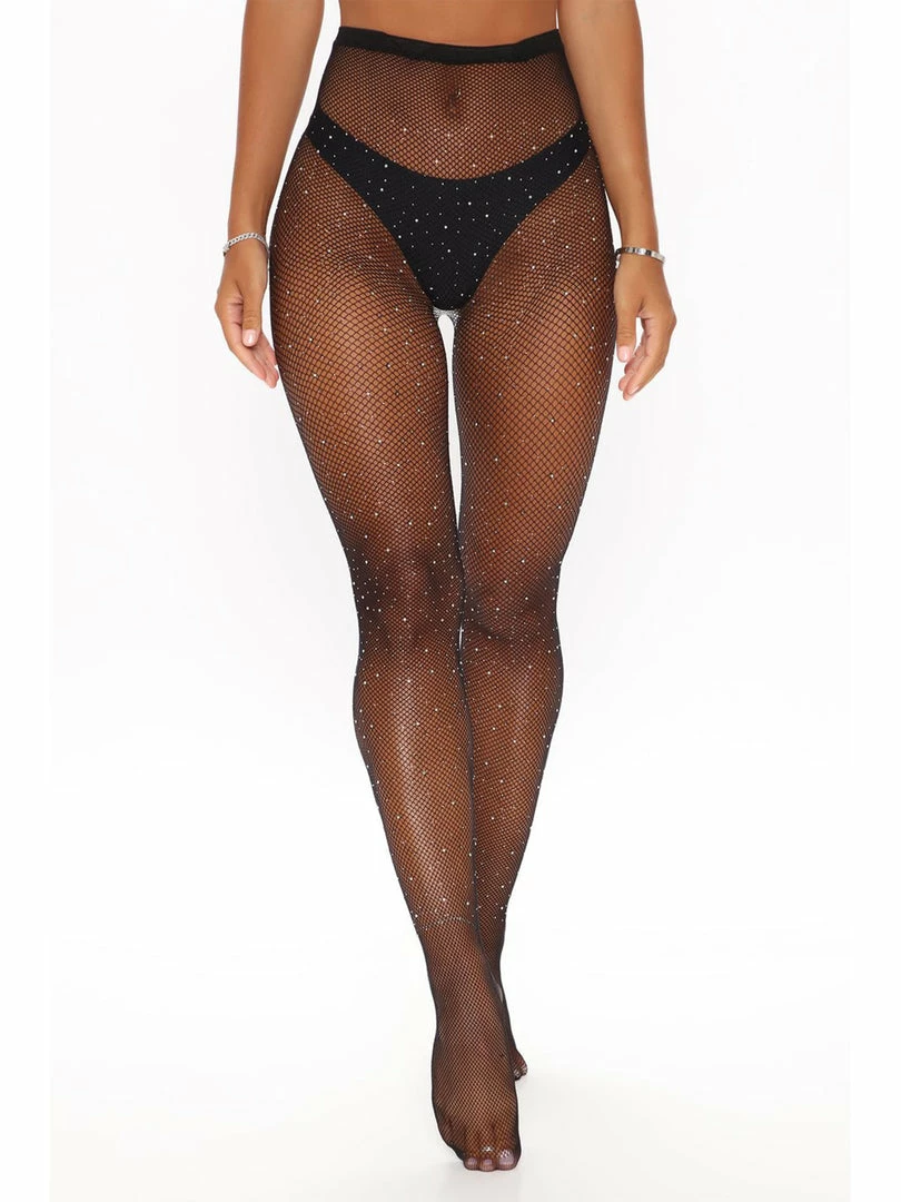 - Package Includes: Black Fishnet Tights with Rhinestones