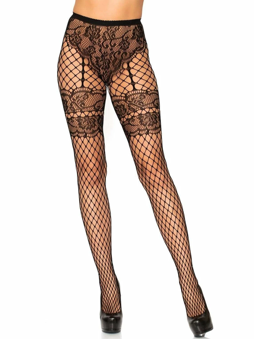 These jaw-dropping fishnet tights feature an intricate lace and garter look, and are made from a high quality hosiery fabric for long lasting wear.