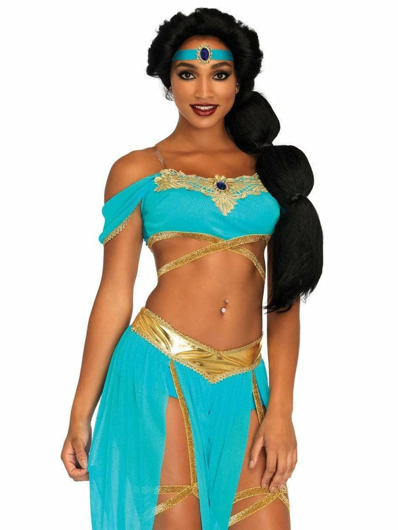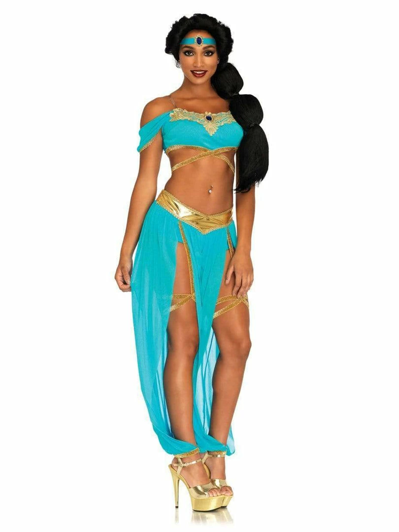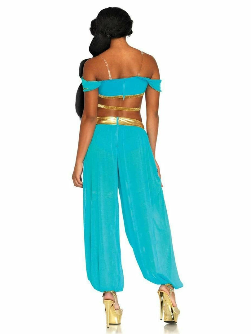 This womens costume will have you looking like a Disney book with dazzling blue and gold colours, providing serious Princess Jasmine vibes! Perfect for your next Arabian nights costume party, or movie themed dress up party, this Oasis Princess Costume Set got you on a magic carpet ride!